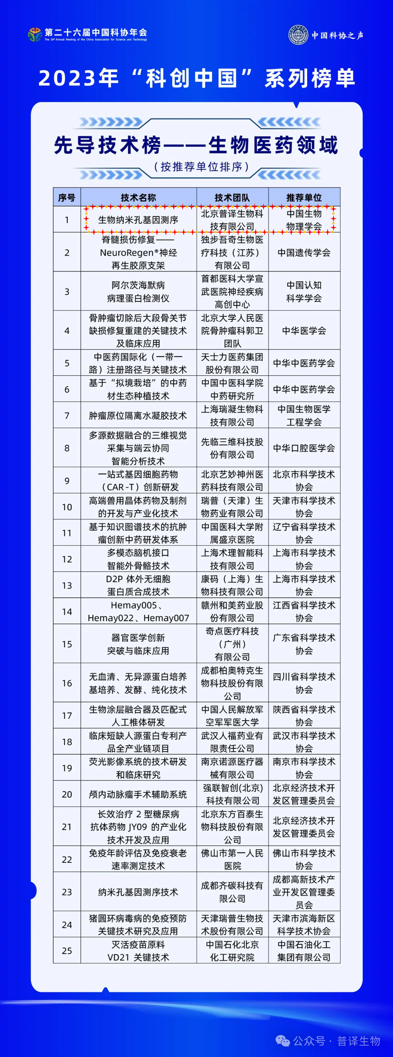 星企足跡 | 普譯生物榮登2023“科創(chuàng)中國”系列榜單榜首