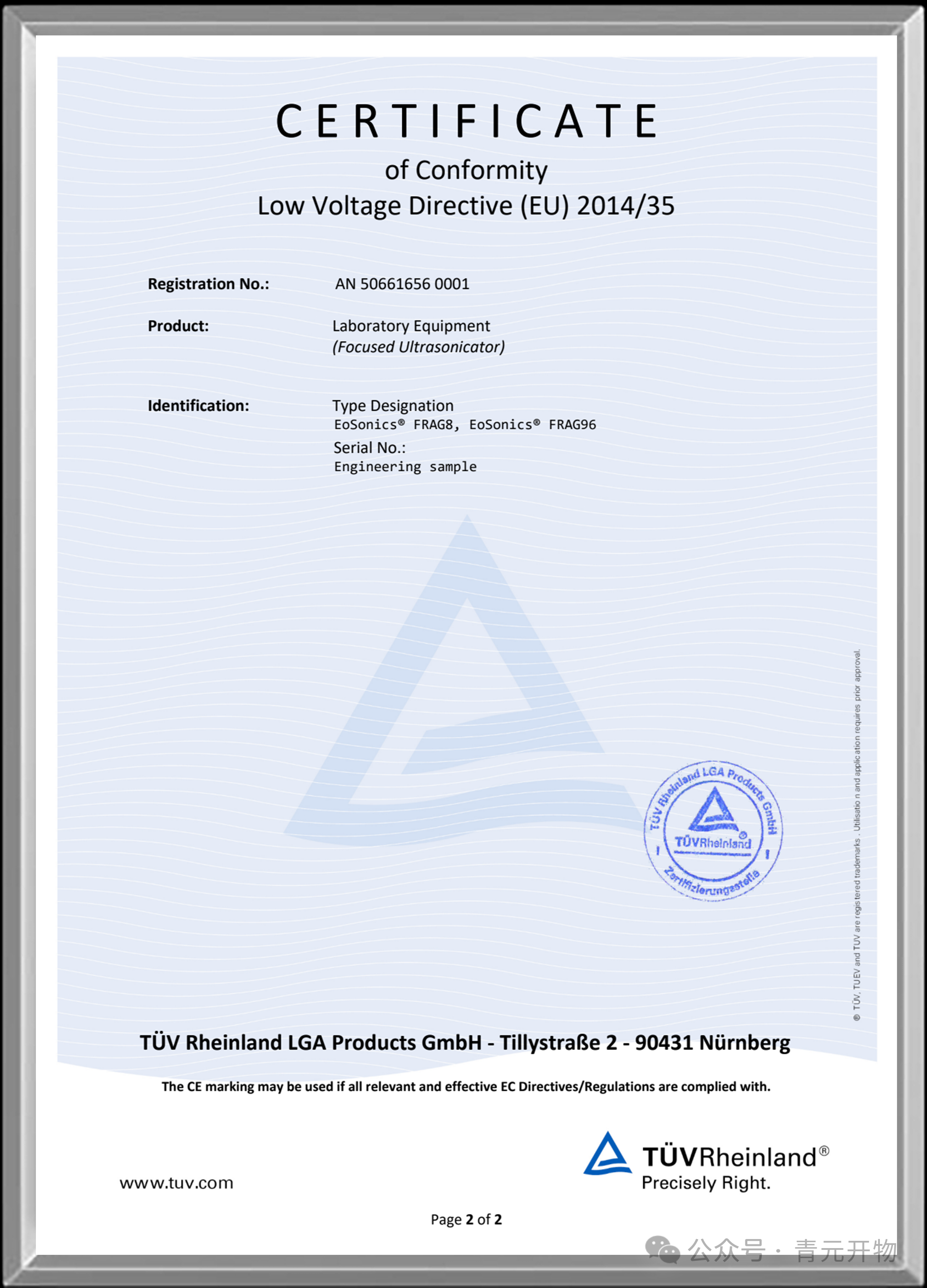 隨著全球市場對高質(zhì)量醫(yī)療設(shè)備的需求不斷增長,青元開物將借助CB、CE認(rèn)證的東風(fēng),加快國際化步伐,推動EoSonics® FRAG系列超聲聚焦打斷儀在全球范圍內(nèi)的廣泛應(yīng)用。