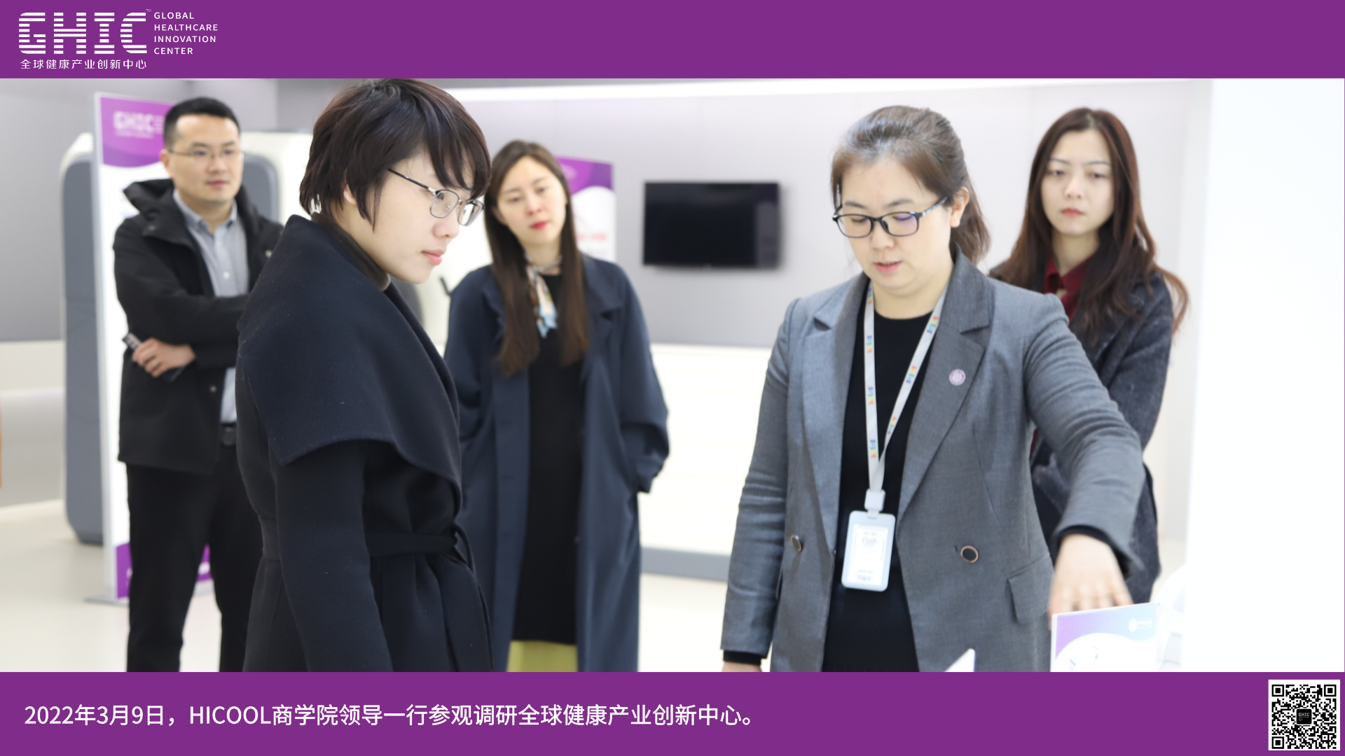 2022年3月9日,HICOOL商學(xué)院領(lǐng)導(dǎo)一行參觀調(diào)研全球健康產(chǎn)業(yè)創(chuàng)新中心。