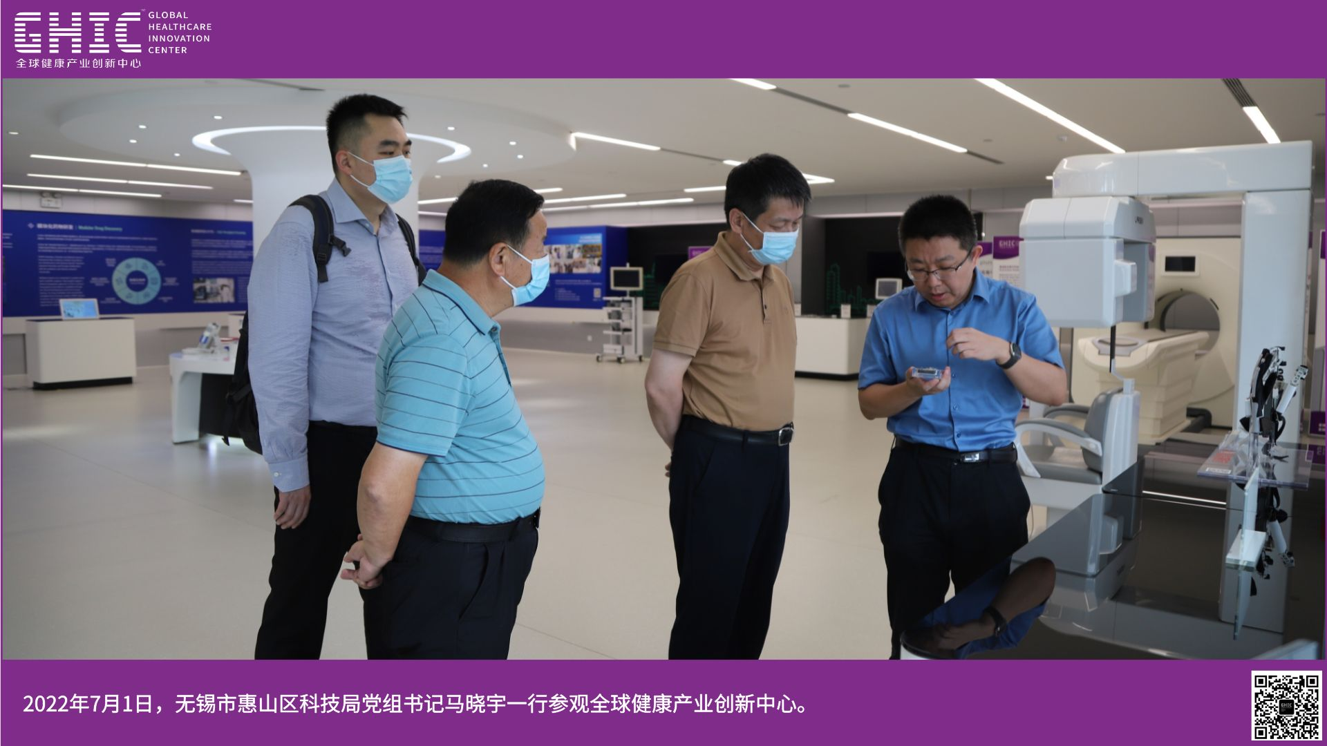 2022年7月1日,無(wú)錫市惠山區(qū)科技局黨組書(shū)記馬曉宇一行參觀(guān)全球健康產(chǎn)業(yè)創(chuàng)新中心。