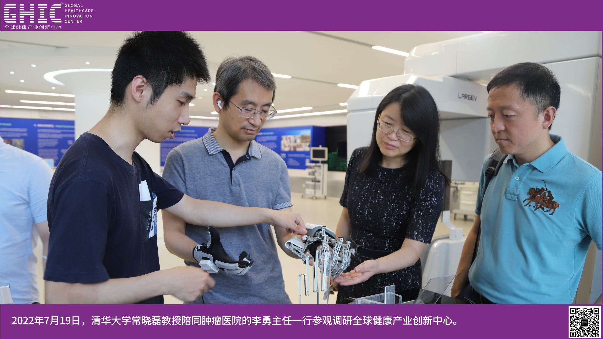 2022年7月19日,清華大學(xué)常曉磊教授陪同腫瘤醫(yī)院的李勇主任一行參觀調(diào)研全球健康產(chǎn)業(yè)創(chuàng)新中心。