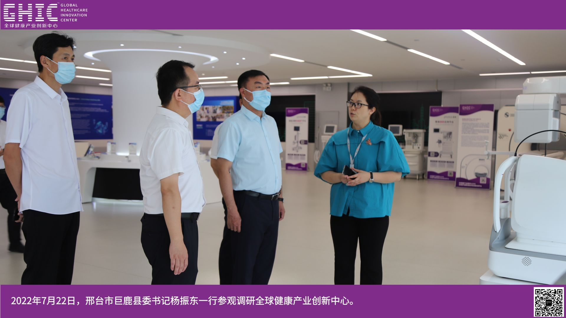 2022年7月22日,邢臺(tái)市巨鹿縣委書記楊振東一行參觀調(diào)研全球健康產(chǎn)業(yè)創(chuàng)新中心。