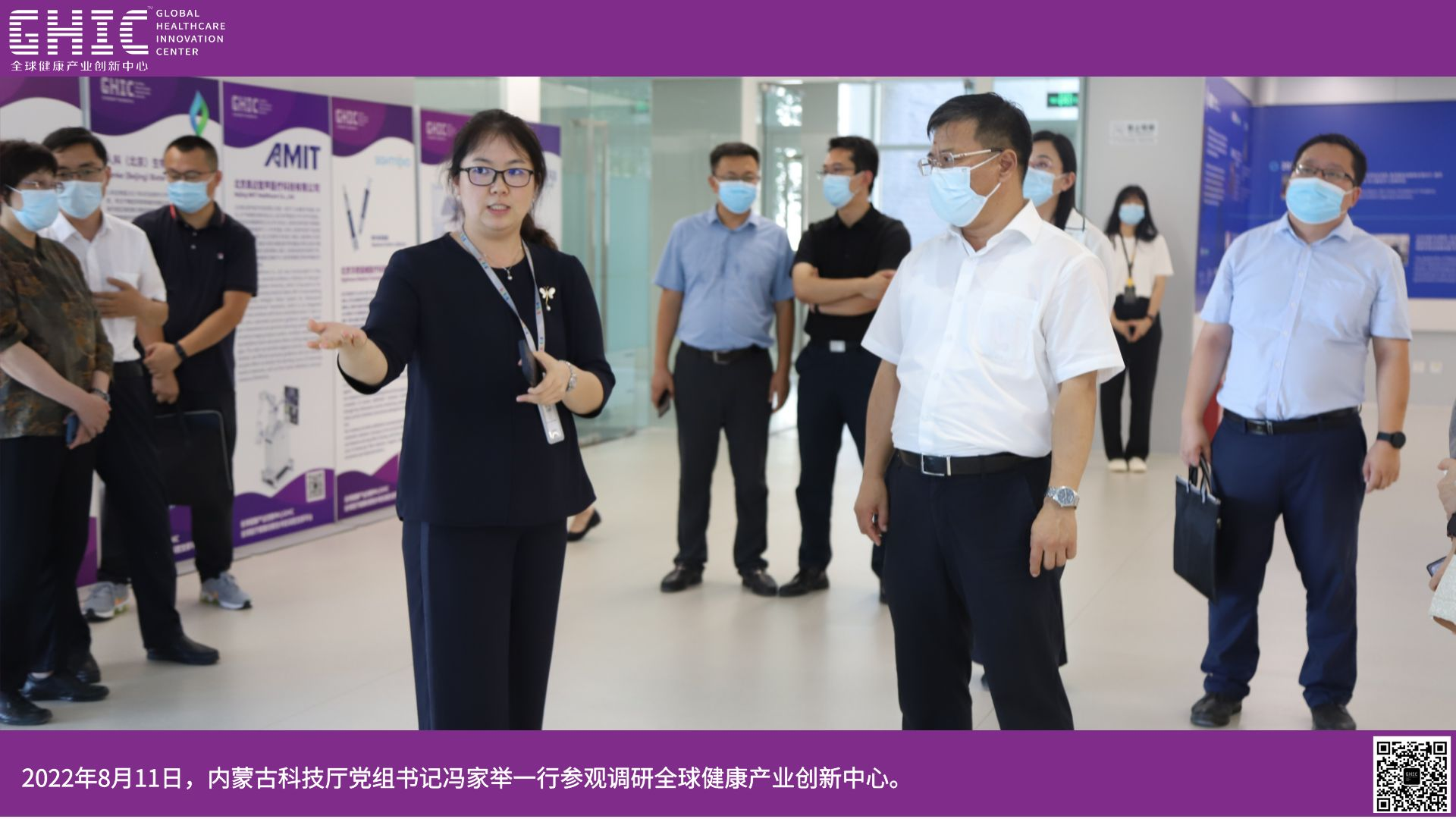 2022年8月11日,內(nèi)蒙古科技廳黨組書記馮家舉一行參觀調(diào)研全球健康產(chǎn)業(yè)創(chuàng)新中心。