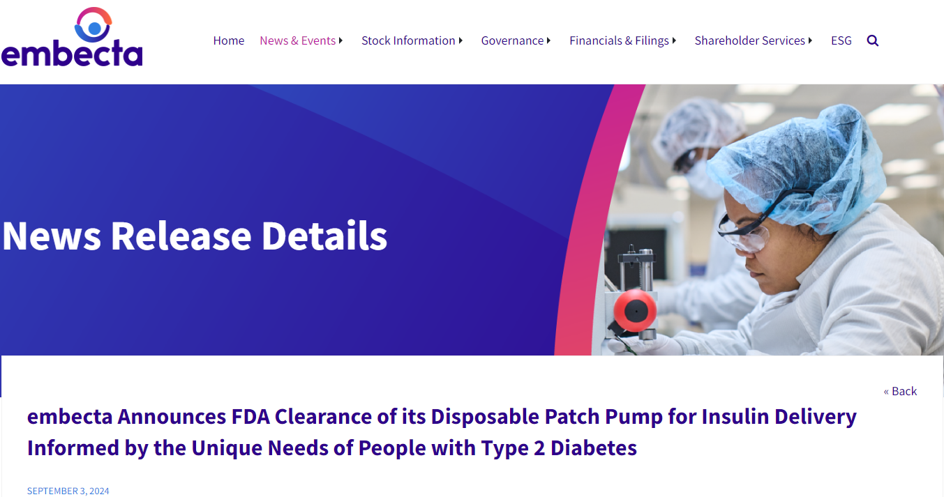 2024年9月3日,Embecta Corp.(納斯達克股票代碼:EMBC),這家擁有百年胰島素輸送經驗的全球糖尿病護理公司宣布,其創(chuàng)新的一次性胰島素輸送系統已獲得美國食品藥品監(jiān)督管理局(FDA)的510(k)批準。