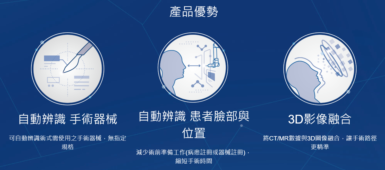 3D醫(yī)學(xué)圖像融合:將CT/MR數(shù)據(jù)與3D圖像合并,以實(shí)現(xiàn)高精度的手術(shù)路徑。機(jī)械手臂會(huì)挾持住術(shù)式用的手術(shù)器械,并順著神經(jīng)外科醫(yī)師規(guī)劃好的手術(shù)路徑,將器械置入病灶。