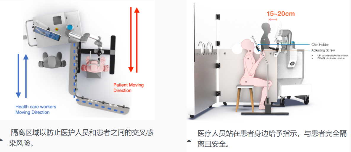在機(jī)器人的協(xié)助下,可以由醫(yī)護(hù)人員進(jìn)行采樣工作。在整個(gè)過程中,進(jìn)行拭子采樣和消毒需要5分鐘,幫助減輕醫(yī)療人員在高傳染性環(huán)境中的心理壓力。