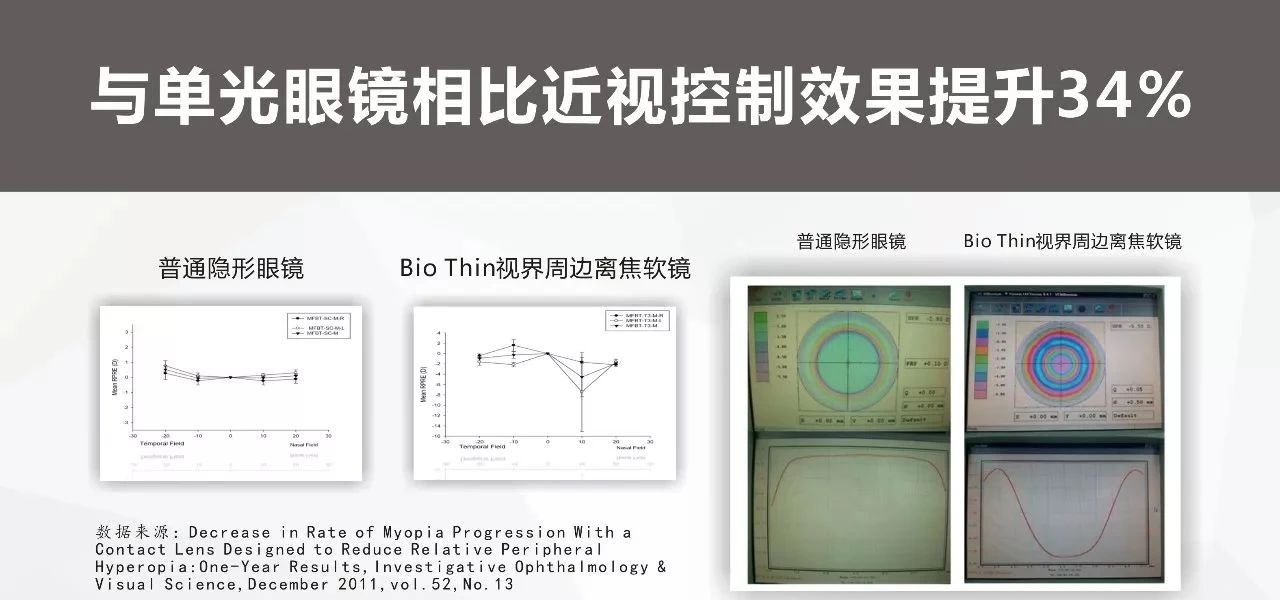 公司生產(chǎn)的BioThin視界離焦軟性親水接觸鏡,不僅對黃斑中心的近視有矯正功能,而且使視網(wǎng)膜中周部的入射光線聚集在視網(wǎng)膜上或前方,形成近視性離焦,延緩眼軸的增長,從而控制近視 。