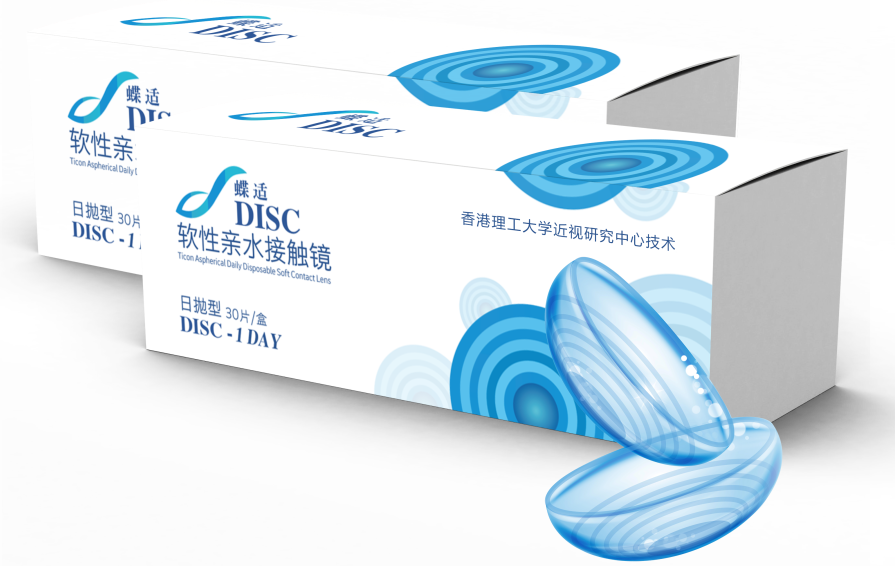 蝶適(DISC)軟性親水接觸鏡的多中心隨機(jī)雙盲臨床試驗數(shù)據(jù)顯示,每天佩戴8小時,近視控制率為59.35%,眼軸控制率為55.10%;10歲以下近視兒童配戴蝶適 (DISC)9同心雙焦軟鏡6個月,可減緩近視進(jìn)展95.9%。
