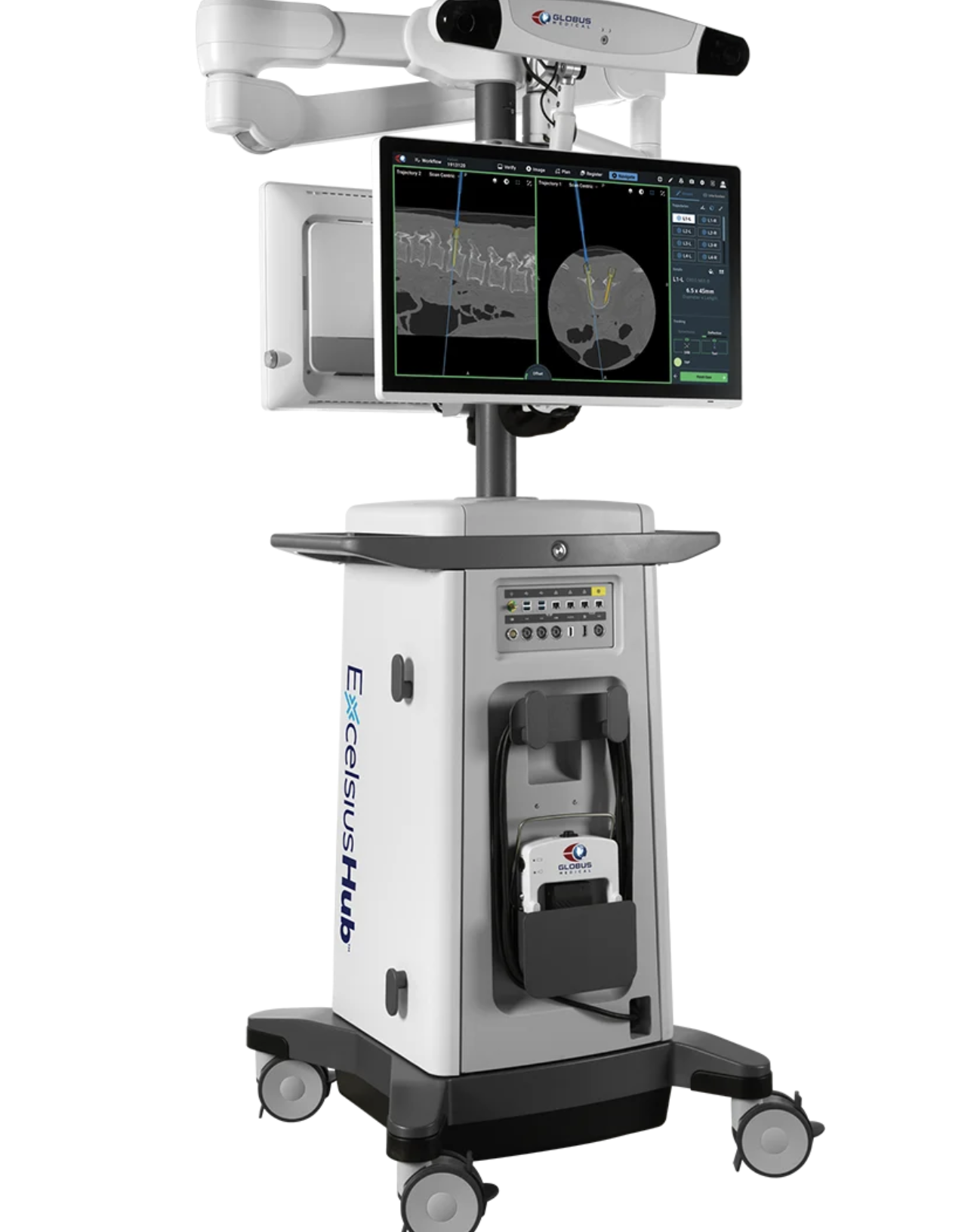 ExcelsiusHub?則是Globus Medical于2024年推出的下一代導(dǎo)航平臺,進一步擴展了ExcelsiusGPS?的功能,通過實時監(jiān)測患者體位變化,保證導(dǎo)航數(shù)據(jù)的持續(xù)精確。該系統(tǒng)兼容多模態(tài)影像,包括Excelsius3D?自動配準(zhǔn)、CT與熒光透視融合及術(shù)中2D導(dǎo)航,并能與DuraPro?振蕩系統(tǒng)及Verzera?高速鉆系統(tǒng)無縫集成,支持多樣化的手術(shù)流程,尤其在復(fù)雜脊柱畸形矯正及微創(chuàng)手術(shù)中,顯著提高了手術(shù)效率與安全性。