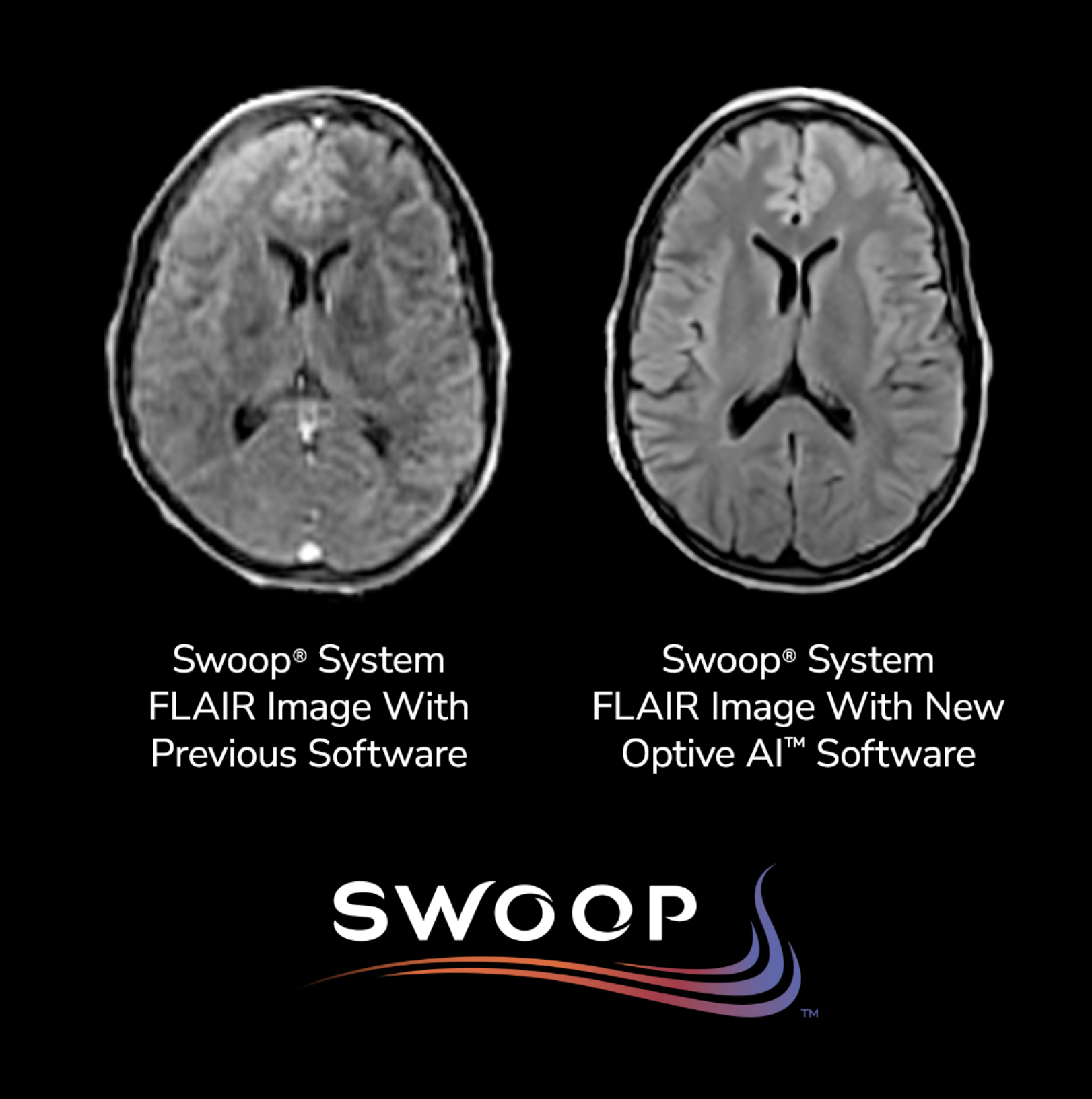 本次獲得FDA 510(k)批準(zhǔn)的新款Swoop系統(tǒng),最大亮點(diǎn)來自其搭載的Optive AI?軟件。這是Hyperfine自2020年產(chǎn)品初次亮相以來的第十代圖像處理平臺(tái),核心目標(biāo)是提升圖像在超低場(chǎng)條件下的分辨率與一致性。
